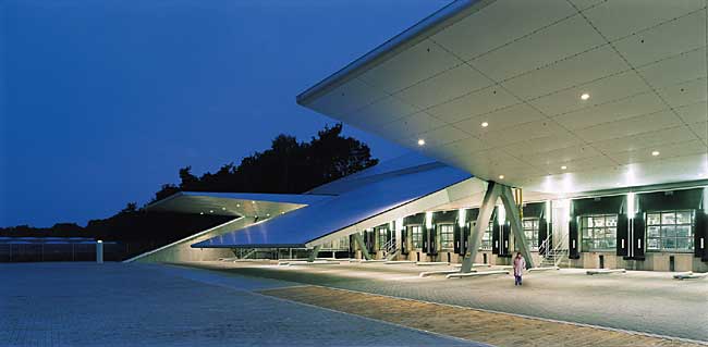 - Abschluss/Verschluss: Tor schliesst nahtlos an Dachkonstruktion an und wird damit zum Teil des Daches. Ein Schwerlastgitter im unteren Bereich schützt das zum Dach gewandelte Tor vor unbefugtem Zutritt. Das Schwerlastgitter wird im geöffnetem Zustand des Tores zum Überfahrgitter.